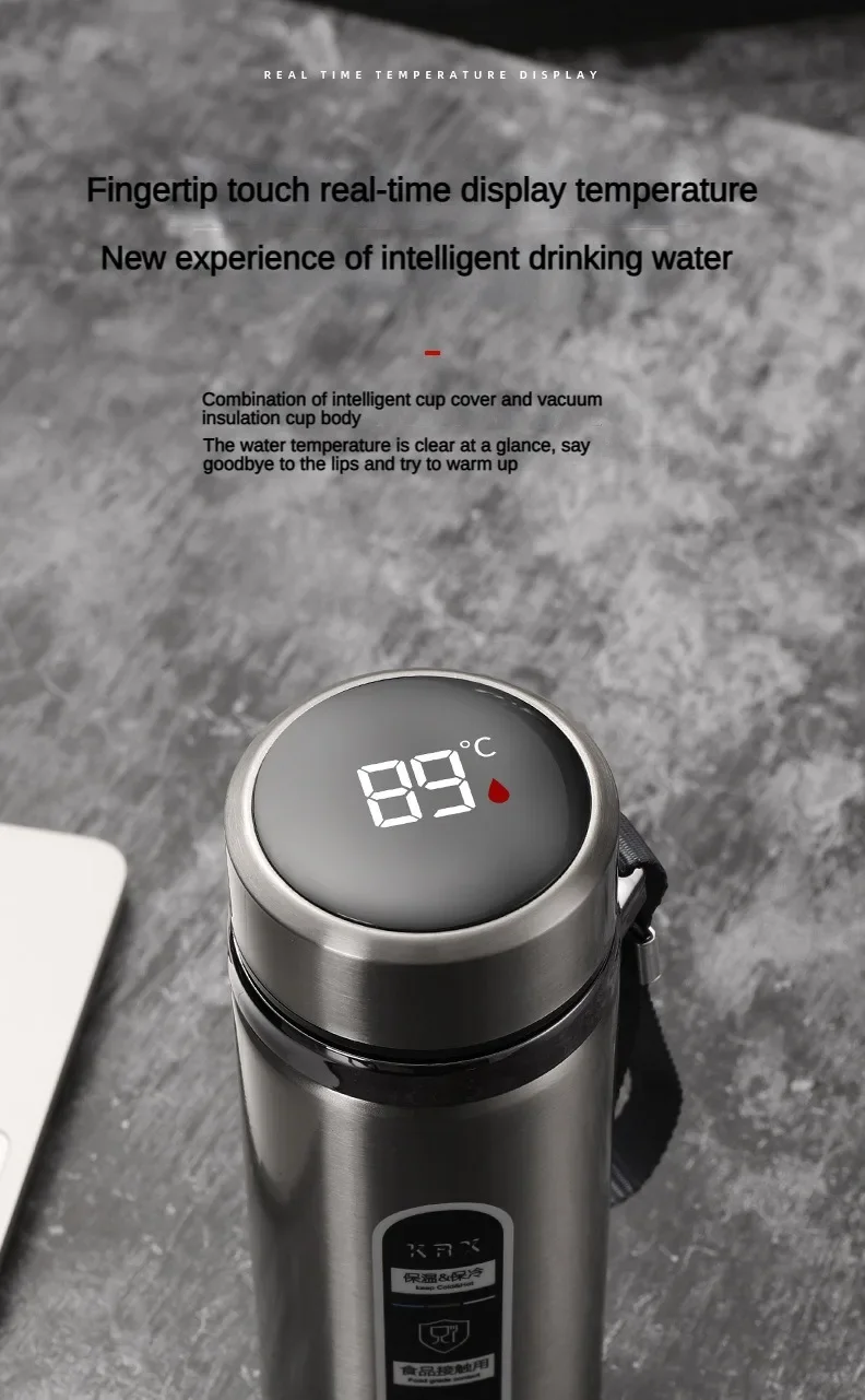 500ML-1Liter Stainless Steel Thermos Bottle with LED Temperature Display Sus304 Tea Water Bottle Vacuum Flask Portable Cups