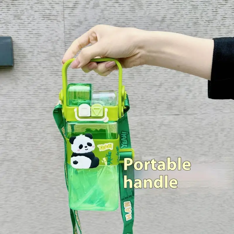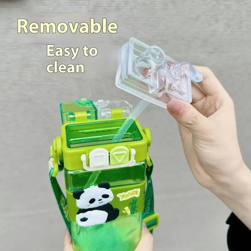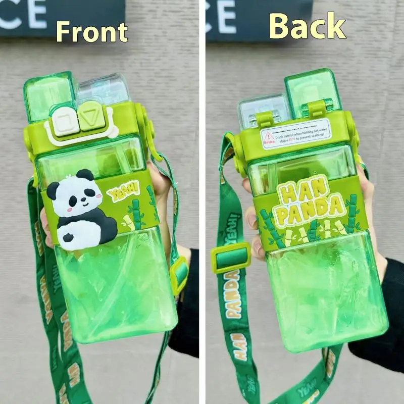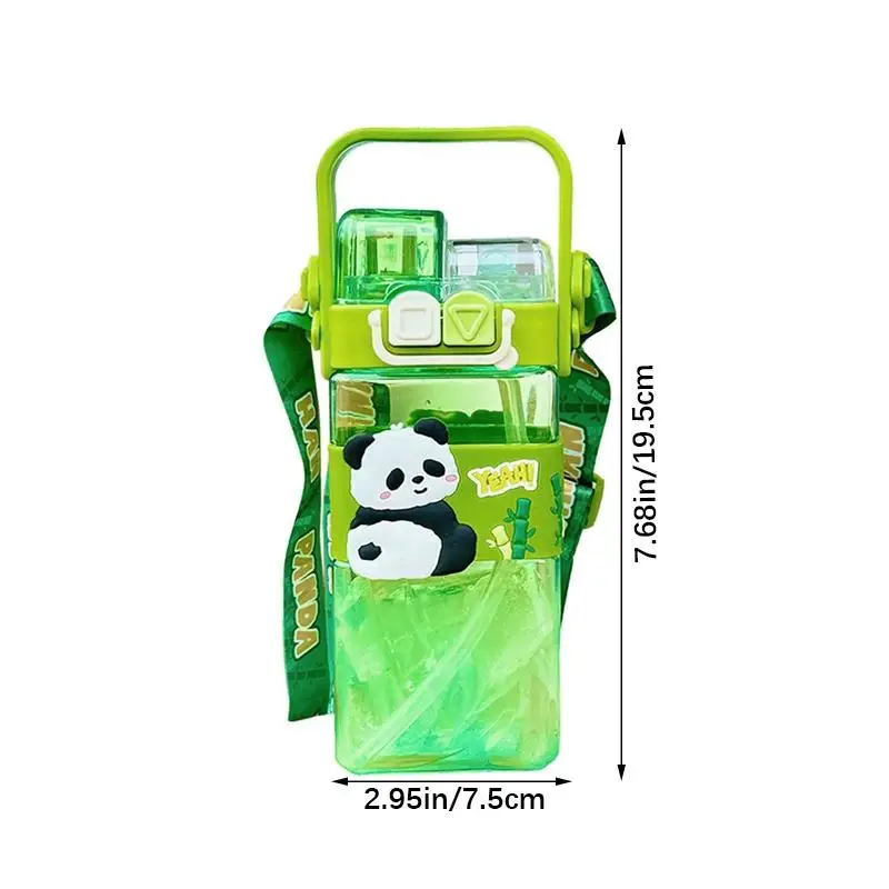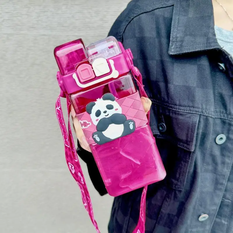 520ml Cute Cartoon Panda Plastic Bottle Double Drink Cup Children’s Student Straw Cup Cartoon Large Capacity Water Bottle