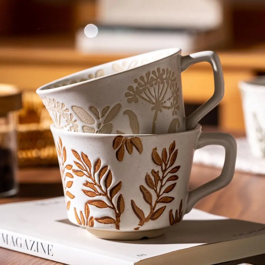 Each cup is handpainted The surface is plantcarved, the irregular design is unique, and there are a variety of patterns and colors to choose from. It is a perfect gift for anyone.