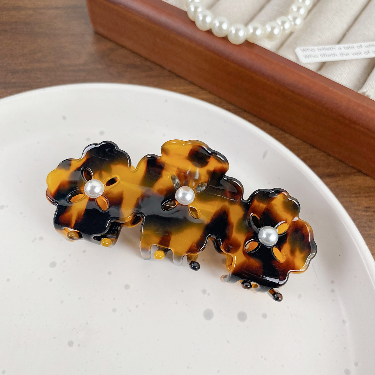 Be the first to review “Beautiful Clover Acetate Grip Pearl Dopamine Temperament Personality Shark Clip Simple And Light Luxury Style”