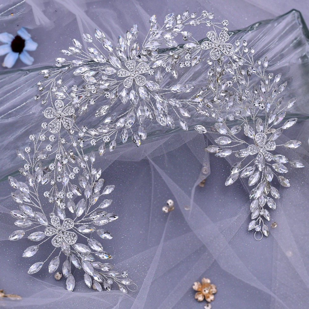 Bridal Wedding Headdress Lengthened Rhinestone Alloy Flower Headband Wedding Accessories
