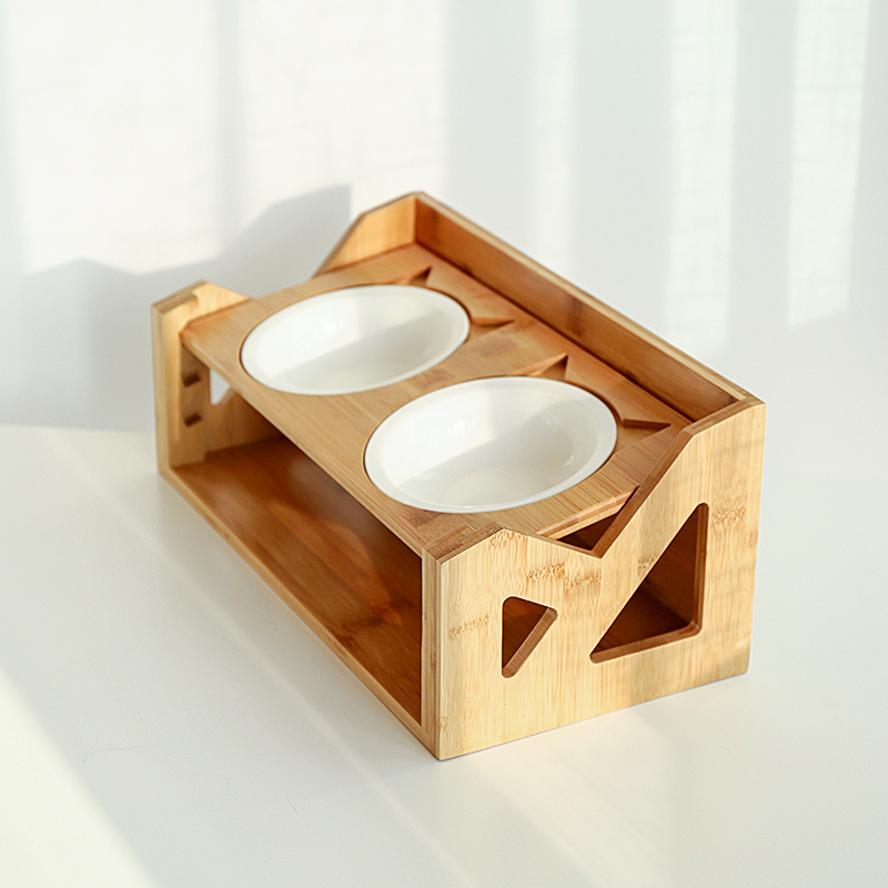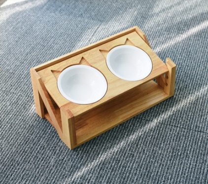 Cat bowl wooden dish rack