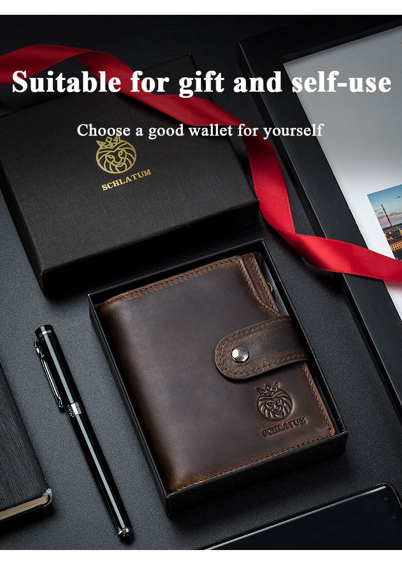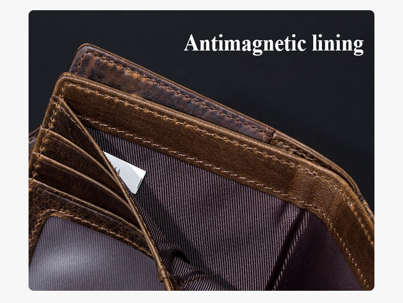 First Layer Cowhide RFID Anti-theft Swiping Leather European And American Retro Men’s Short Vertical Wallet