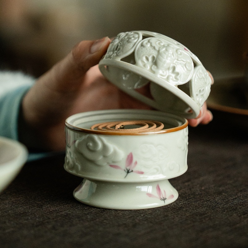 Hand Drawn Orchid Xiangyun Ceramic Incense Burner