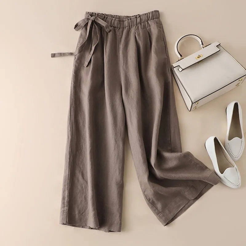 High Waist Side Lace-up Retro Art Elastic-waist Casual Pants For Women