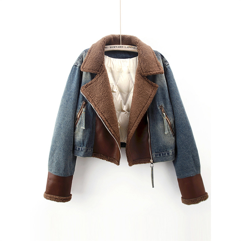 Lamb Wool Stitching Lightweight Down Liner Fleece-lined Denim Coat Women’s Short Top Jacket