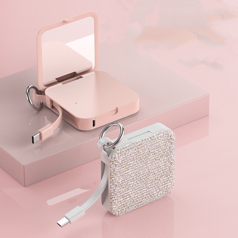 Mini Keychain Comes With Wire Diamond-encrusted Beauty Mirror Mobile Charging Bank