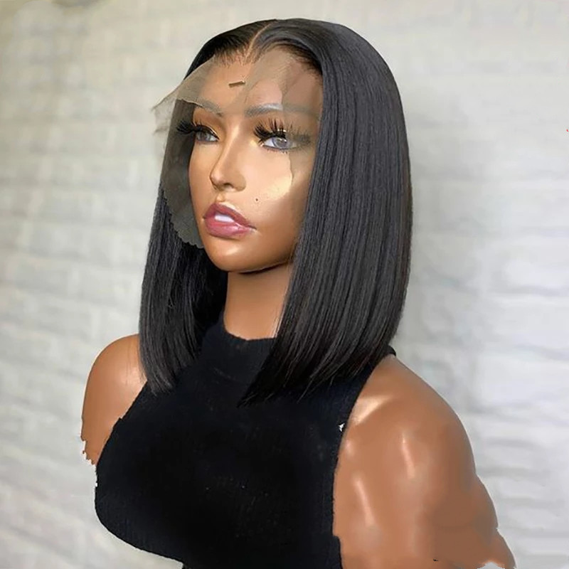 Short Bob Wig Bone Straight 13×4 Transparent Lace Front Wigs