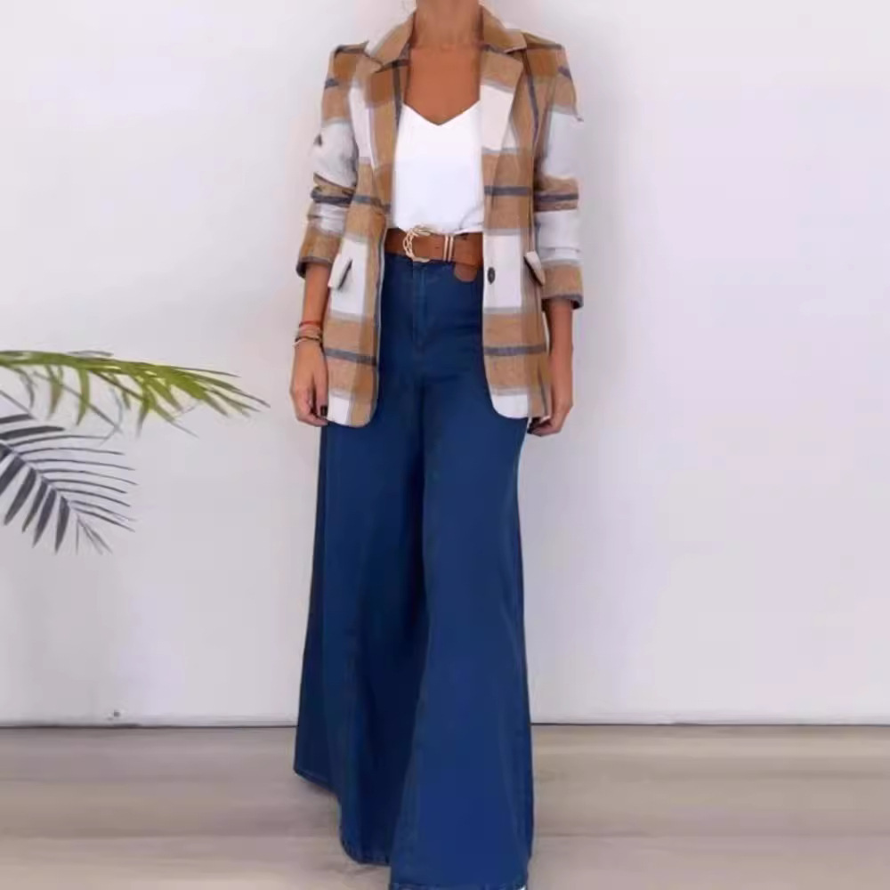 Single Breasted Plaid Wool Coat Women